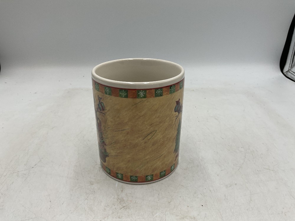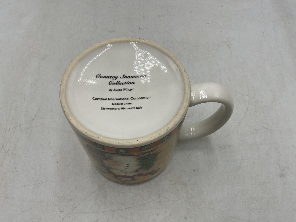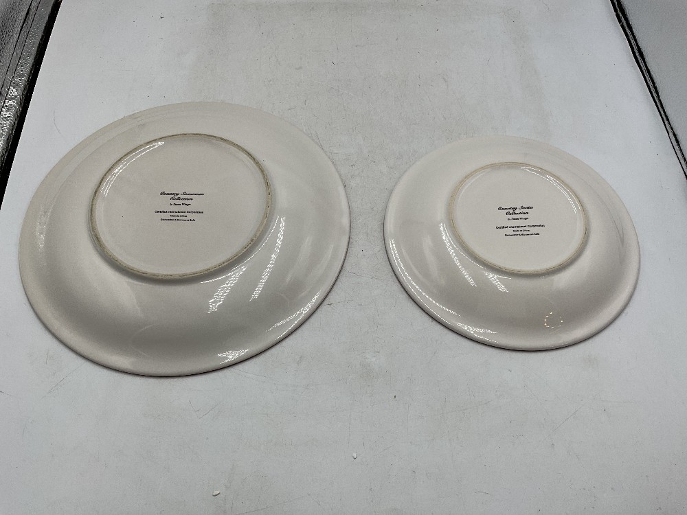 Dinner plates: 10 inches diameter Small Plates: 8 inches diameter Mugs: 3 1/2 inches tall x 3 inches diameter