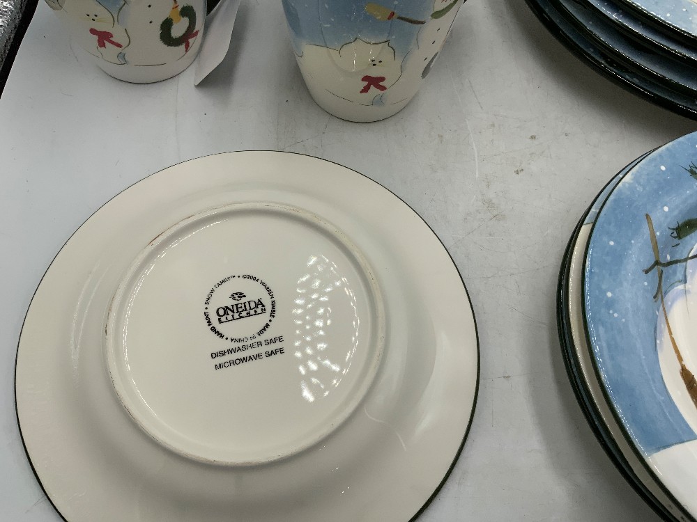 Lg plates 11” diameter, Sm plates 8.25” diameter, mugs 3.75” diameter x 4.5” H