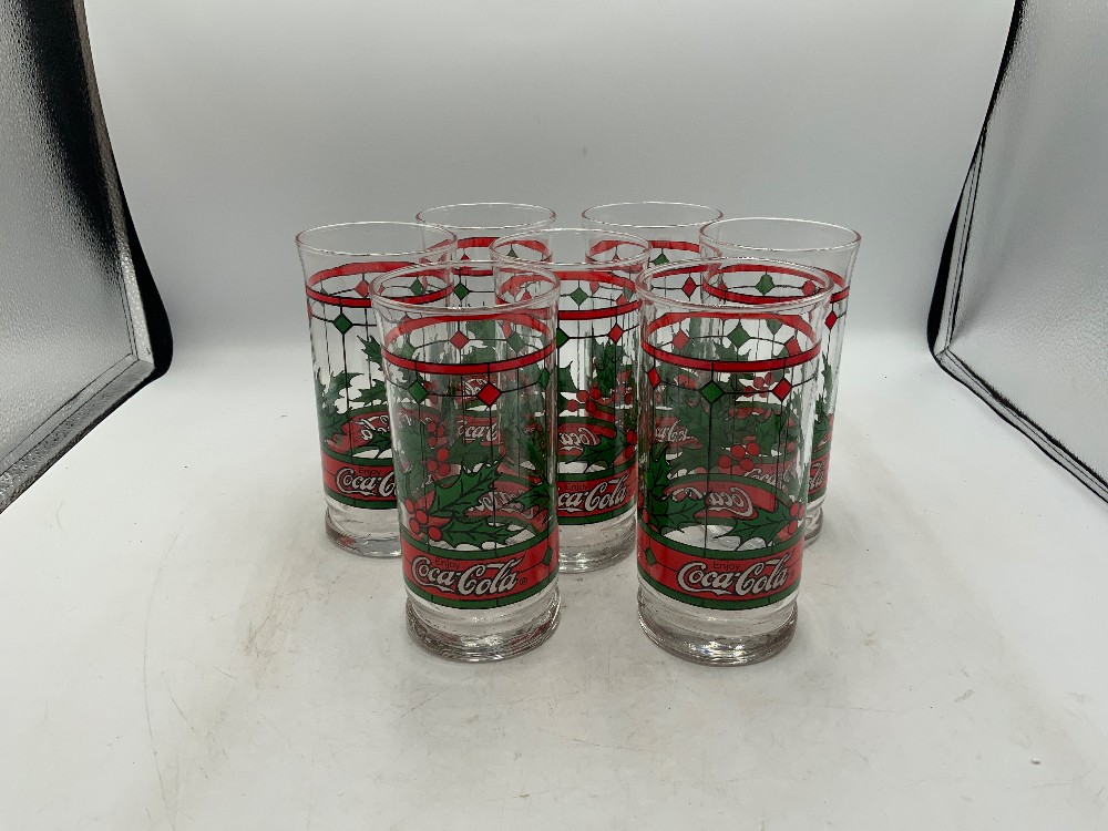 Set of 7 Coca Cola Christmas glasses 6” tall x 3” wide