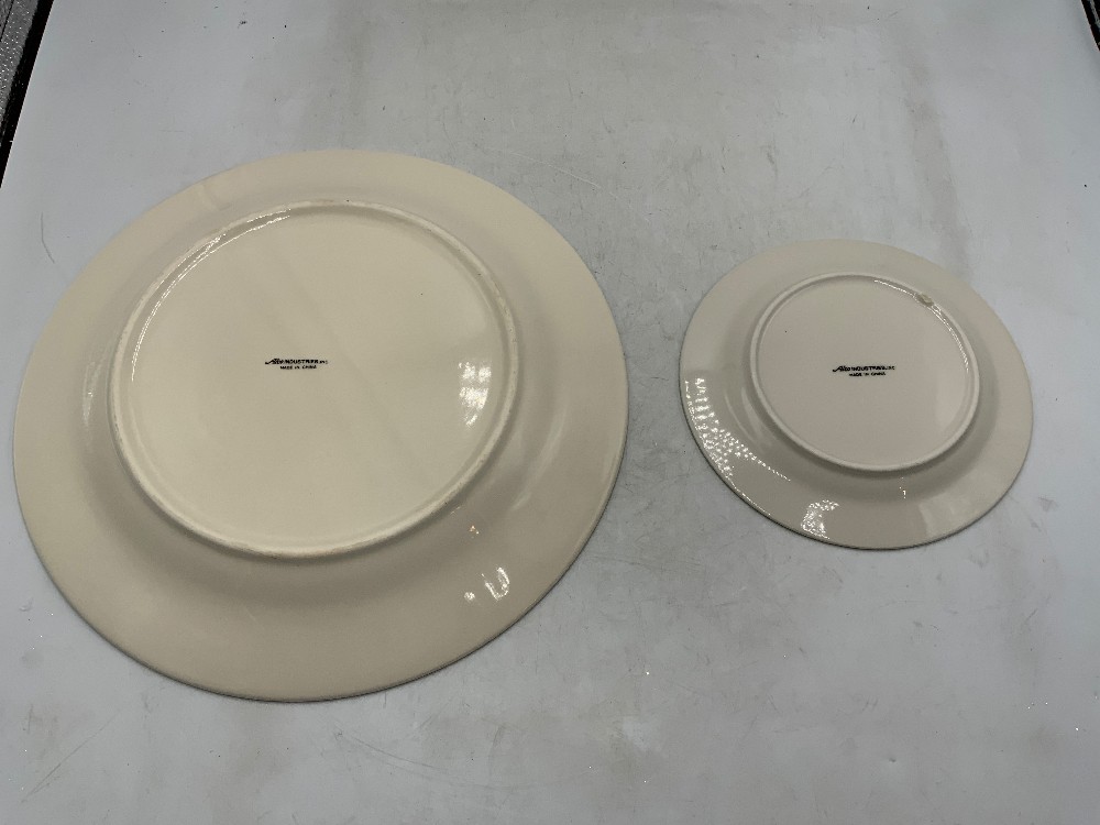 Dinner Plate: 10inch diameter Saucers: 6inch diameter Mugs: 3inch tall x 3inch diameter