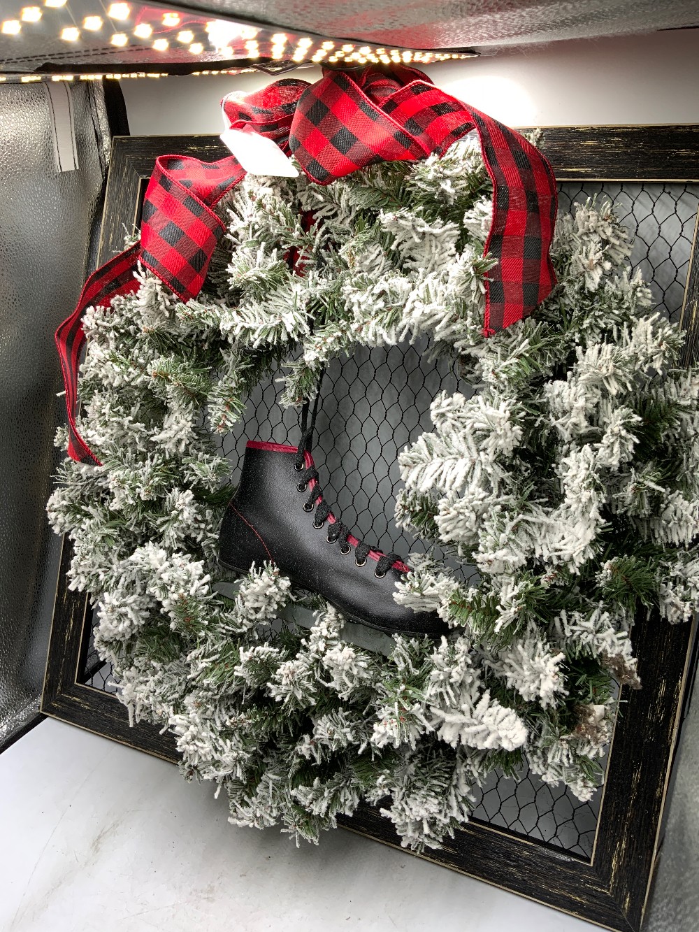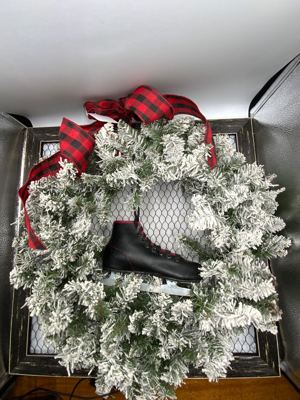 Framed Chicken Wire Wreath with Ice Skate 23 x 23 Square