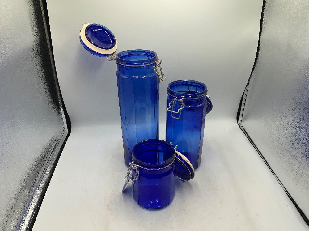 Cobalt Blue Canisters - set of 3 Large - 12”x4” Medium -10”x4” Small-6”x4”