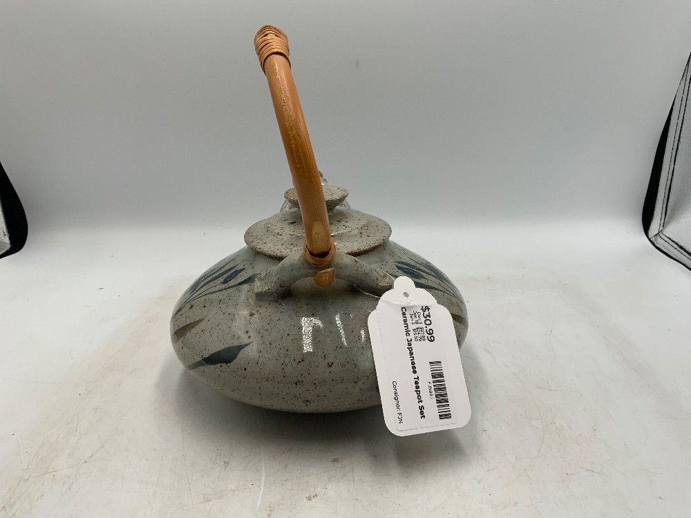 teapot: 6 inches diameter x 4 inches tall Each cup: