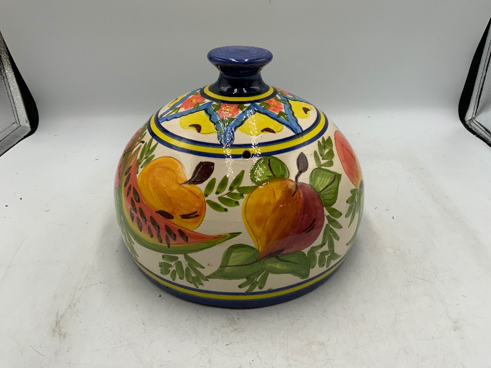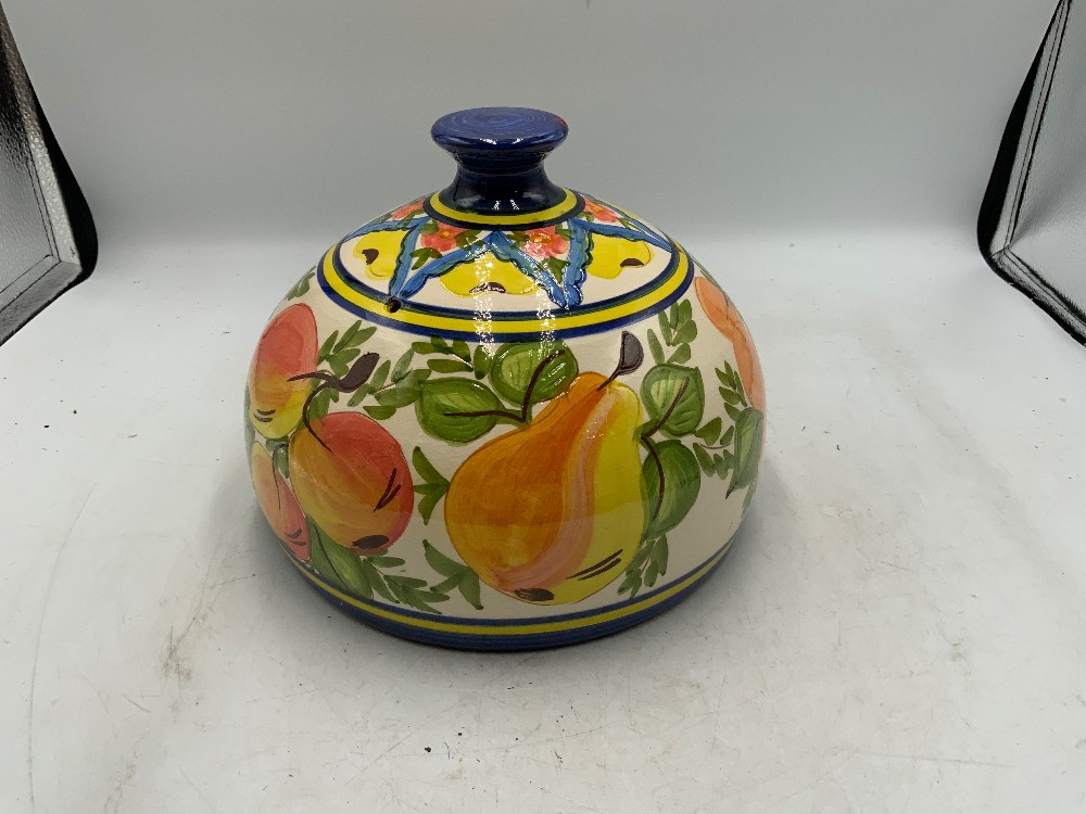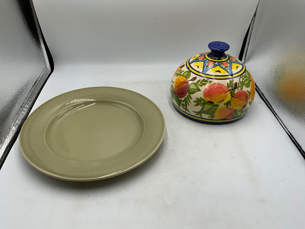 Plate is 11 1/2 inches diameter Lid is 7 1/2 inches diameter x 6 inches tall